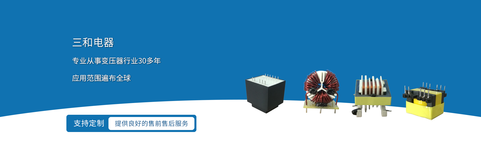 三和電器主營產品有高頻高壓變壓器、各類開關電源變壓器、低頻變壓器、濾波器、電感器、扼流圈、高效LED模組和高壓凈化電源等。三和電器一直致力于開發新產品,以滿足不同的應用需求。三和公司在負離子發生器、電視機、打印機、點火器、工業/商業、電信、能源和醫療等領域擁有豐富的經驗,并且仍在不斷努力進入不同的領域。